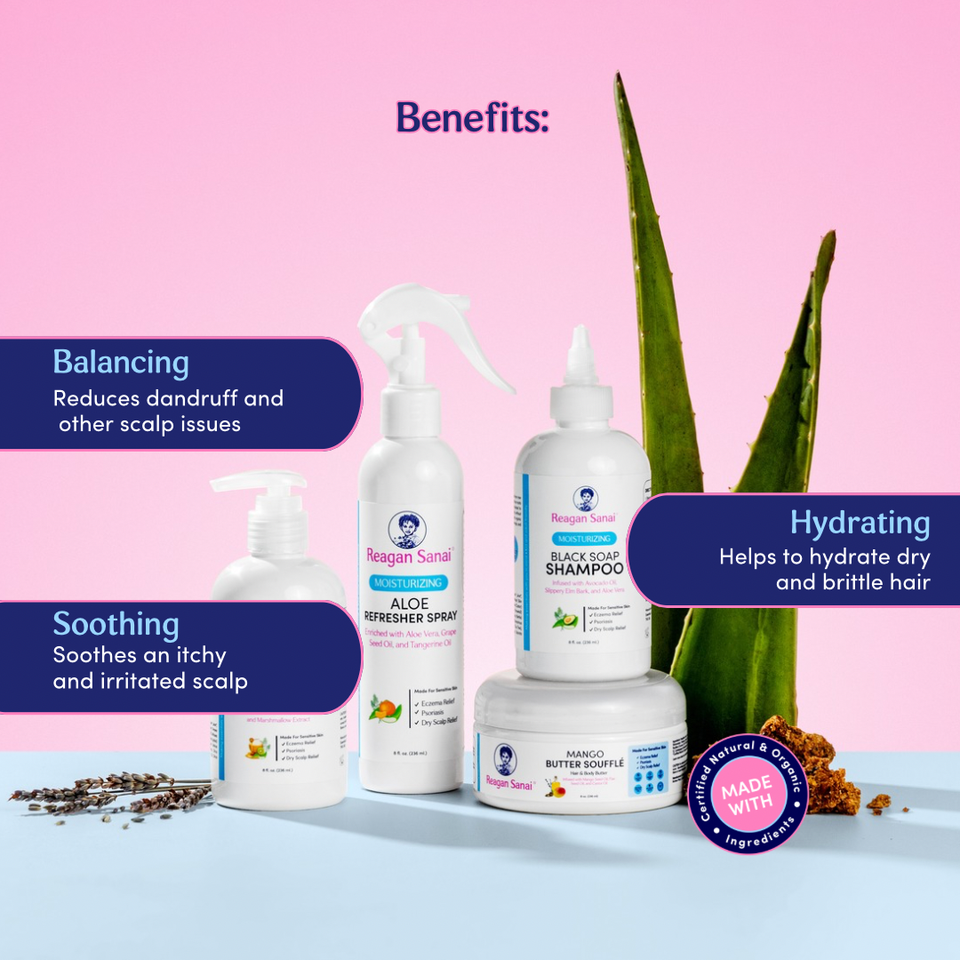 Reagan Sanai Infant Collection Kit cleanses, moisturizes, and soothes your infant’s delicate scalp and skin. Safe for cradle cap and eczema.